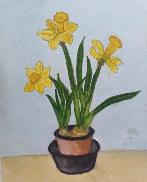 ENG: In Korea, daffodils bloom in soft yellow hues around March and April. When the artist first picked up the brush, they mainly painted flowers, marveling at their delicate structure and beauty.